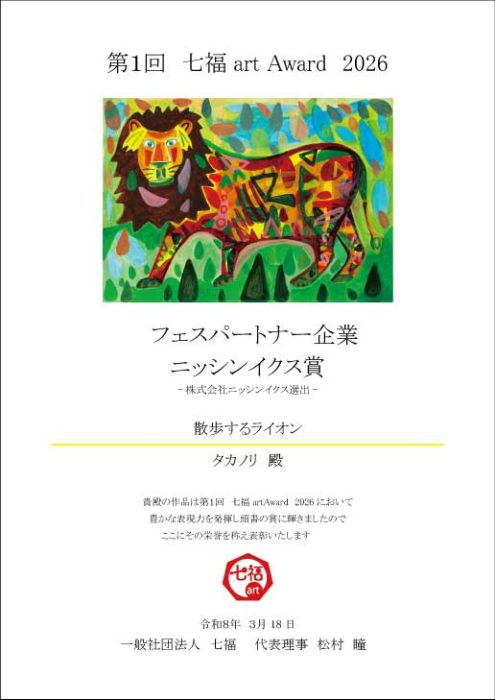 【第1回 七福artアワード 2026】フェスパートナー企業として「ニッシンイクス賞」を選出・授与いたしました