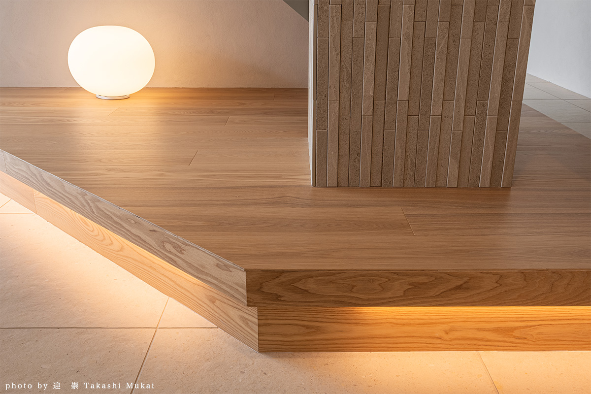 九州 施設名未公開 リアルパネル ヘリンボーン タモ柾目ヘリンボーン